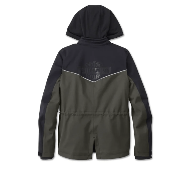 • Design Details: Jacket features drawcord waist, contrast piecing, split back seam, and reflective detailing on back yoke. Removable hoodie features kangaroo pocket, zip front, and rib-knit cuffs and waistband.