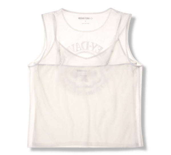 Sheer layering style gets a glistening touch in our Willie G™ Skull Bling Mesh Top. Its mesh outer layer and removable jersey inner camisole are cut in a shorter length for a shape-flattering silhouette. They create a seamless elevated look together, or can be worn separately with other options in your wardrobe. The mesh layer features stunning rhinestone graphics spotlighting the iconic Willie G Skull. Know the history—though the Skull is one of his most popular creations, Willie G. Davidson also designed several motorcycles, including the 1971 FX Super Glide® model and the 1977 FXS Low Rider® model.