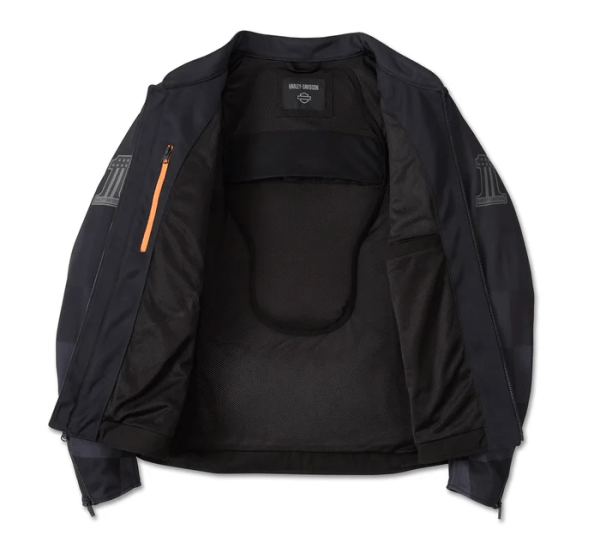 Race-inspired style intersects with cooler riding comfort on our Zephyr 2.0 Mesh Jacket. Airflow is the ticket here, thanks to its rugged mesh construction and lining (zoom in to see). This men’s motorcycle jacket also features ample pocket space for securing essentials, a ride-friendly split mandarin collar, and reflective material to boost visibility. For superior impact protection that feels weightless, it’s equipped with our D3O Ghost Armor at the shoulders and elbows (see specs for details and back armor options). It’s handsomely finished with graphics and a tonal checkered flag pattern that honors our racing legacy. Know the history—the #1 Logo featured on the sleeves here originally debuted in 1969 to celebrate our AMA Grand National Championship Title.